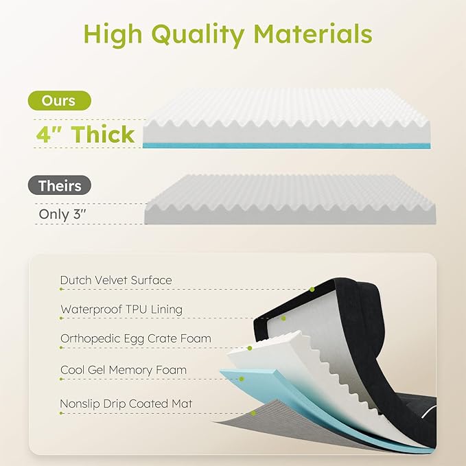 - Orthopedic Support:CWAWZ's big dog bed is filled with a 4" thick layer of high density orthopedic foam to cushion dog's joints and provide optimal support as they sleep, especially suitable for older dogs with anxiety and large dogs with arthritis