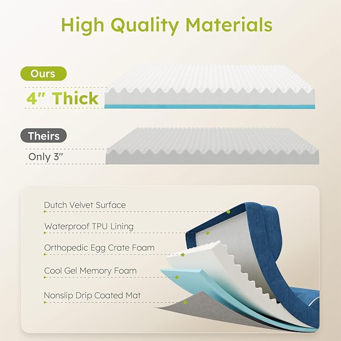 - Orthopedic Support:CWAWZ's big dog bed is filled with a 4" thick layer of high density orthopedic foam to cushion dog's joints and provide optimal support as they sleep, especially suitable for older dogs with anxiety and large dogs with arthritis