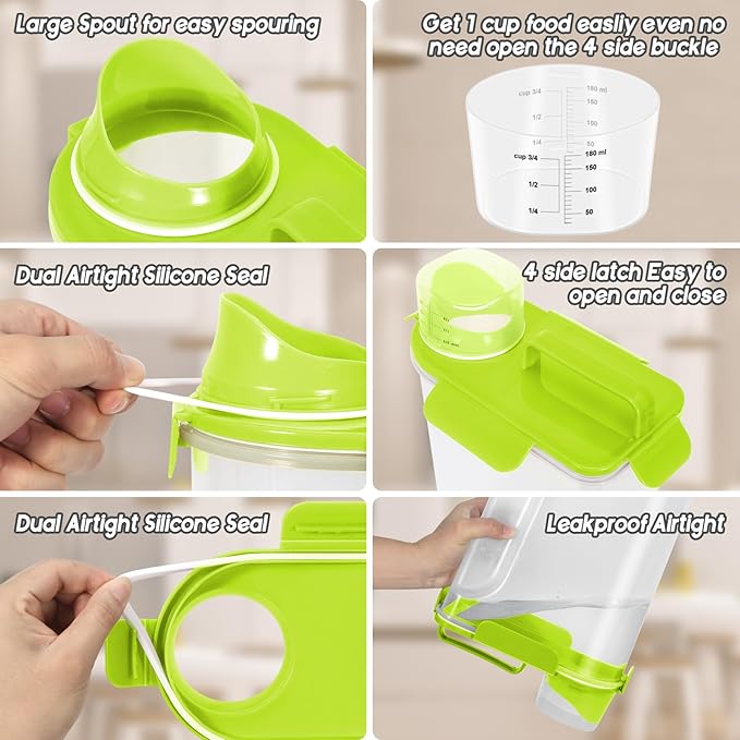 - MATERIAL: Reusable and practical pet food storage container is made of BPA-free food-grade plastic.Safe for storing human food or pet food.Durable enough,long-lasting,easy to clean,transparent body,food can be seen at a glance.