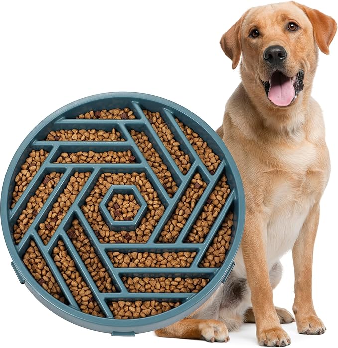 WHIPPY Slow Feeder Dog Bowl, Puzzle Maze Design to Slow Down Eating, 3-Cup Capacity, Anti-Gulping Food Bowl for Medium & Large Dogs,Navy Blue