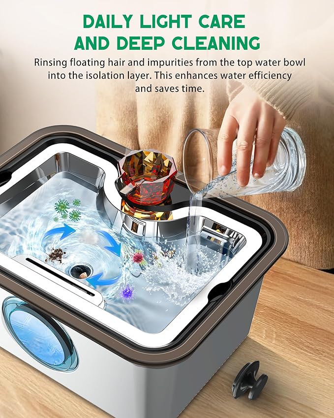 - Prevent backflow and keep water cleaner with our innovative isolation layer and drain hole design. Simply rinse floating debris into the isolation layer for easy daily maintenance and deep cleaning. This prevents filter clogging and maximizes water usage, saving you time and effort.