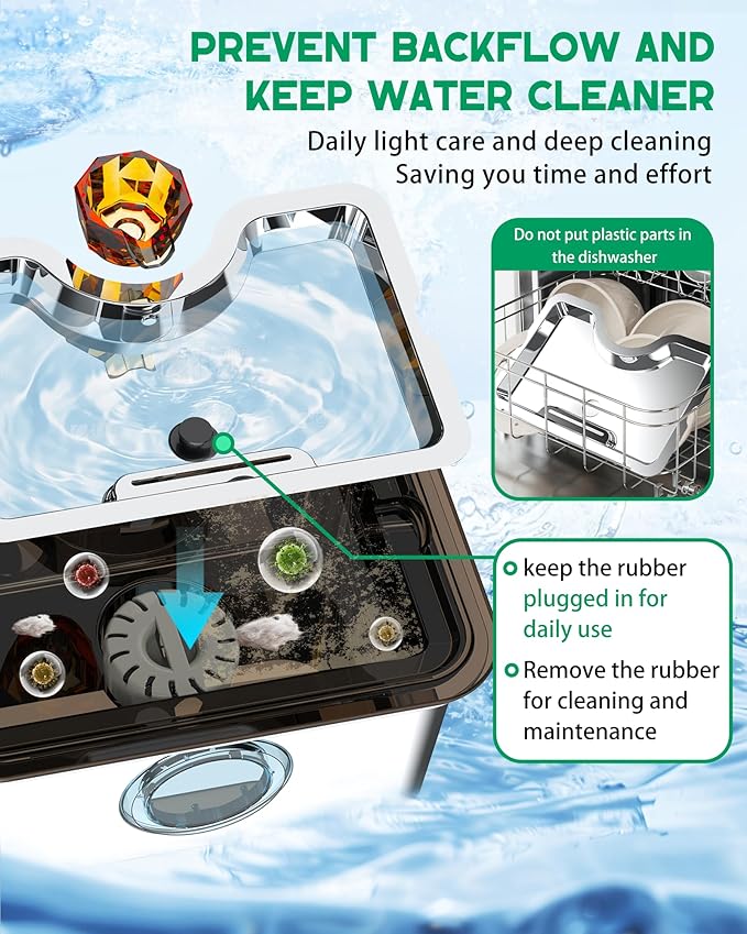 - Unique Dirt Isolation Layer Design: Say goodbye to dirty drinking water! This dog fountain water bowl features a unique dirt isolation layer that filters out hair and debris, ensuring your dog always has access to fresh, clean wate, keep your dog hydrated and healthy.