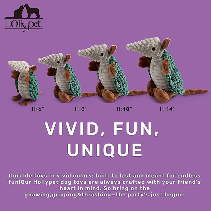 - Unique Sound - Hollypet Armadillo Squeak Toys (except 6 inch) make a sound that's not high pitched, but rather a unique and funny grunt sound that your furry friend will love. Unlike noisy bones, ropes, or other normal stuffed plush dog toys