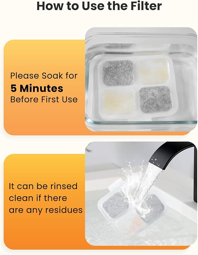 - Reusable Washable Sponge: The pre-filter sponge first catches debris and hair, keeping the filter clean. Its washable design extends the lifespan of the filter, decreasing the frequency and cost of filter cartridge replacements. Plus, the water fountain for dogs with an enlarged filter area ensures fresher water for your pet