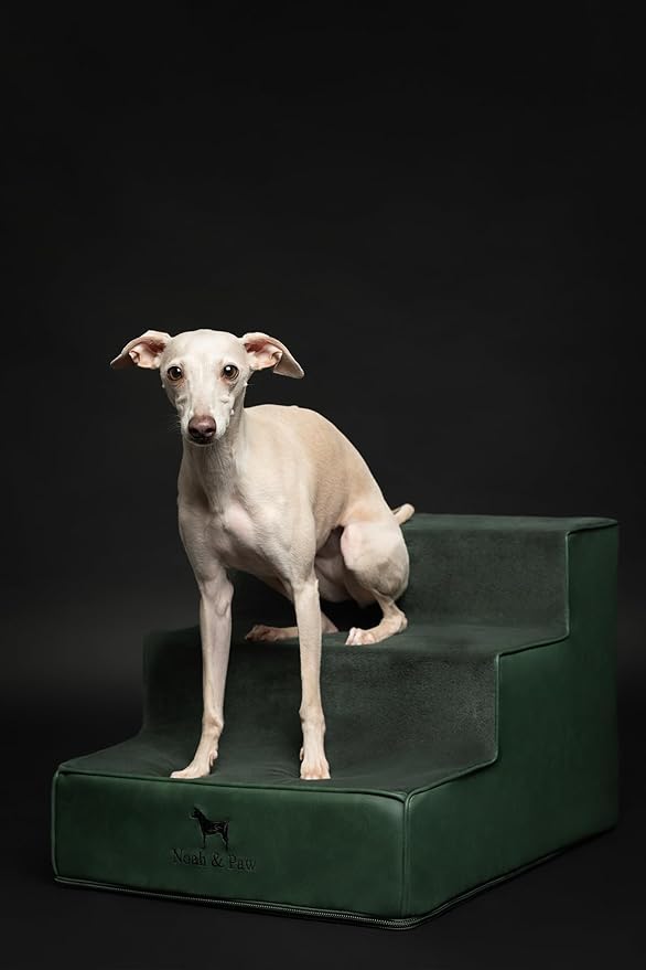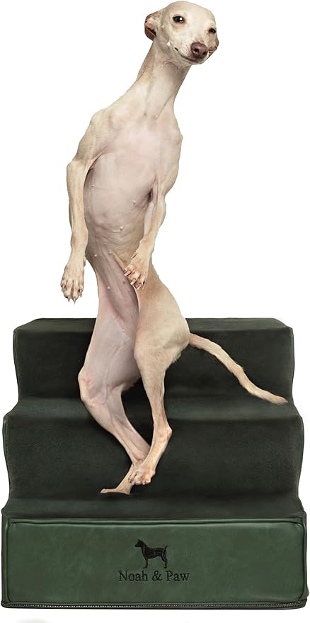 - The Noah & Paw dog stairs leather collection offers a unique and luxurious solution to assist puppies, senior cats, and small dogs with climbing. The pet stairs are crafted with vegan leather to blend in with any home decor. The steps are adorned with a plush fabric.