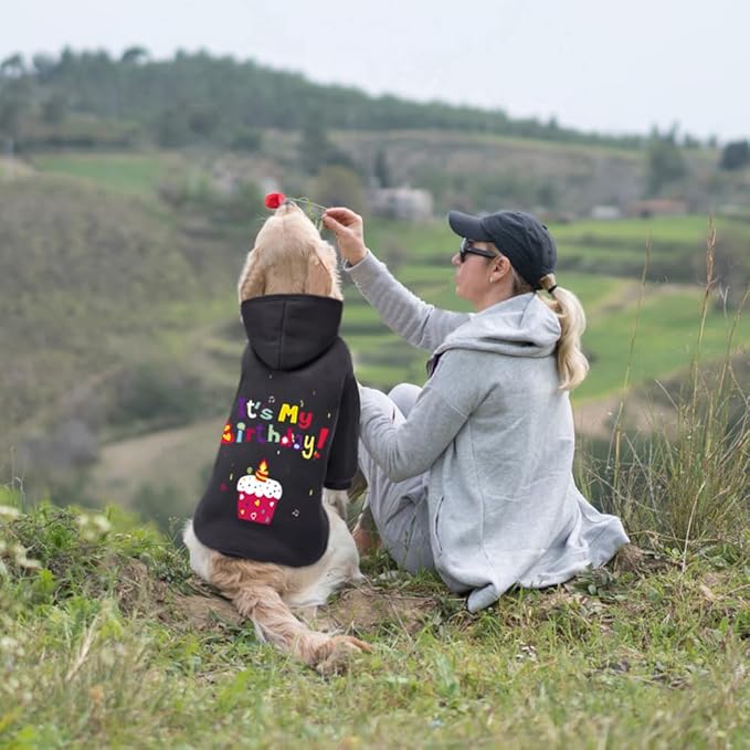 GreenJoy Dog Sweater Dog Hoodie Cold Weather Coat Hooded Sweatshirt for Puppies,Cats, Small Medium Large Dogs (Black(It's My Birthday), X-Small)