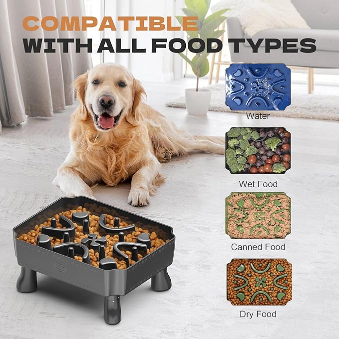 - 2-in-1 Removable Bowl: This 2-in-1 dog bowl becomes a slow feeder with the puzzle insert tray or a standard single bowl without it with wet and dry foods. The bowl is detachable, allowing for easy hand washing or cleaning in the dishwasher