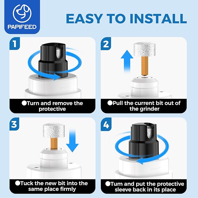 - 🐾【Efficient and precise nail care】 PAPIFFEED integrates advanced diamond drill bit grinders into their dog nail grinders to ensure accurate and efficient pet paw grinding. Say goodbye to worries about wear and tear with our electric dog nail clipper, as it consistently provides excellent trimming results. Your pet will enjoy the pleasant experience of trimming exquisite nails.