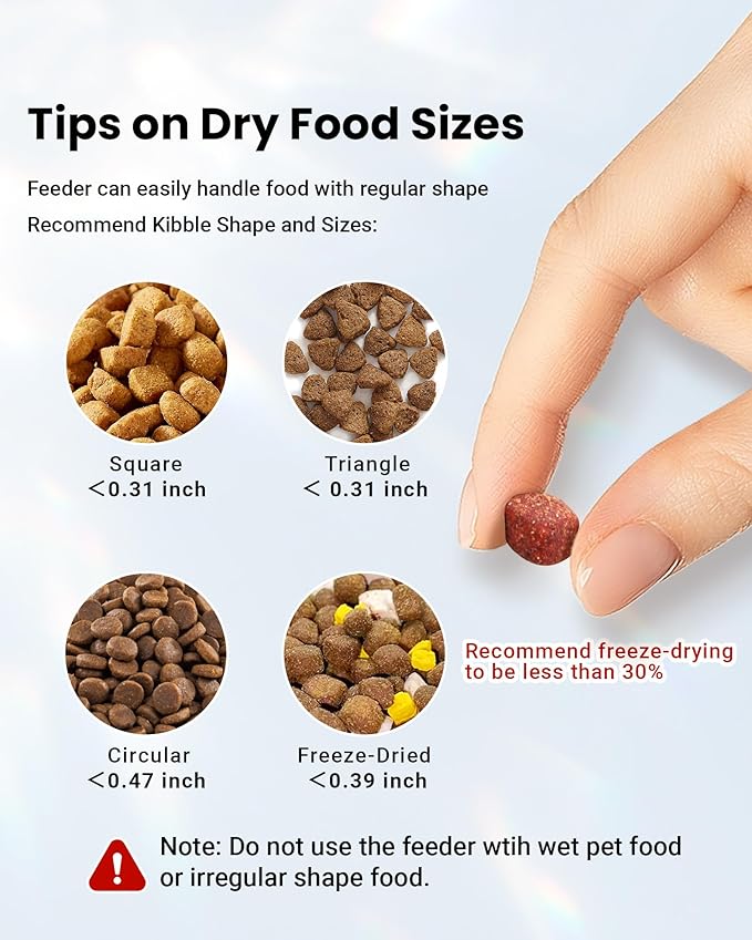 - Jam-Proof Pet Food Dispenser: Our advanced anti-jam mechanism in this auto cat feeder ensures smooth food delivery every time, while keeping pests out of your pet supplies.