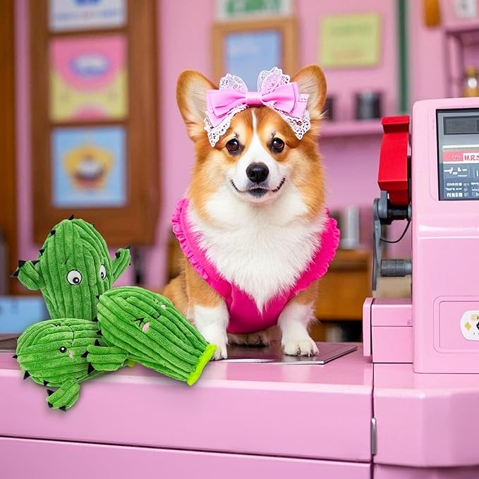 No Stuffing 3 Pack Squeaky Dog Toys- 2 in 1 Interactive Plush Dog Toy- Cactus Shaped Rip and Reveal Toy for Puppies-Indoor & Outdoor Play Training & Toss & Play