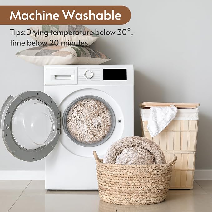 - Premium Material: The donut pet bed is featuring a plush faux fur exterior with polyester fiber fill interior, this cozy canine nest combines tactile comfort with structured cushioning