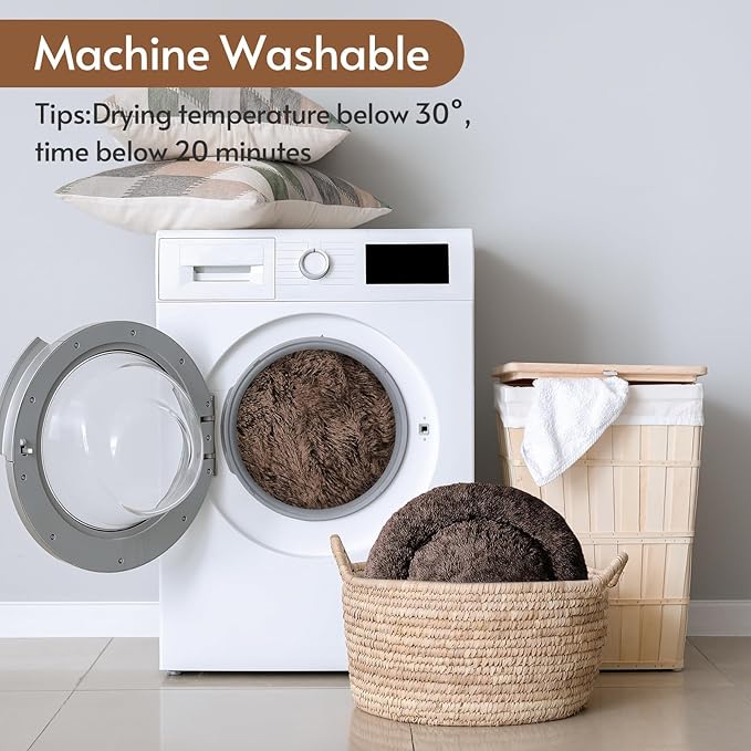 - Premium Material: The donut pet bed is featuring a plush faux fur exterior with polyester fiber fill interior, this cozy canine nest combines tactile comfort with structured cushioning