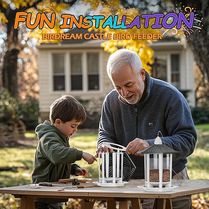 - FUN-TO-INSTALL: This bird feeder features a traditional oriental architectural style with a retro pagoda design. It offers a feeding spot for sparrows and provides you and your family with a delightful 1-minute assembly experience. Get ready to enjoy a fun and simple installation process! (Includes installation video and manual)