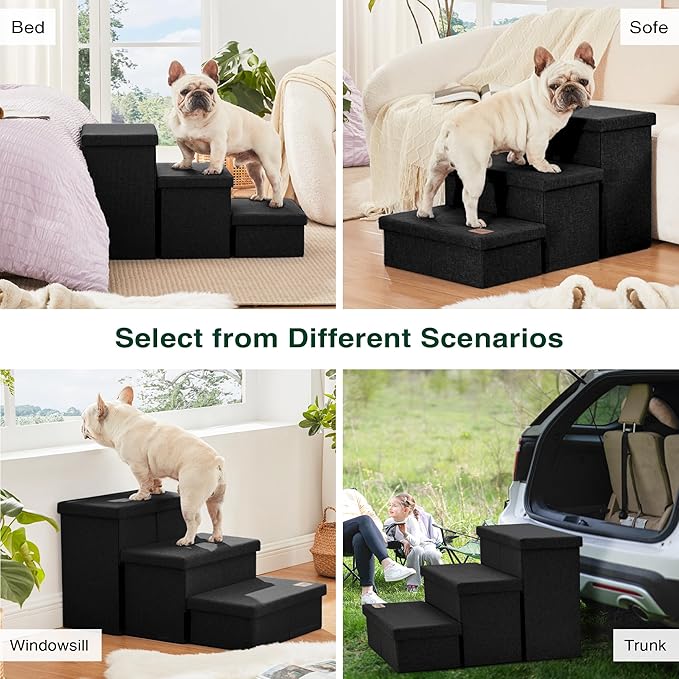 Love's cabin Dog Stairs with Storage,3 Steps Wider Dog Steps for High Bed 18" H,Foldable Pet Stairs for Small Medium Large Dogs Cats for Bed Couch Car,Ramp with Zip up to 200 lbs,Black,No Condo