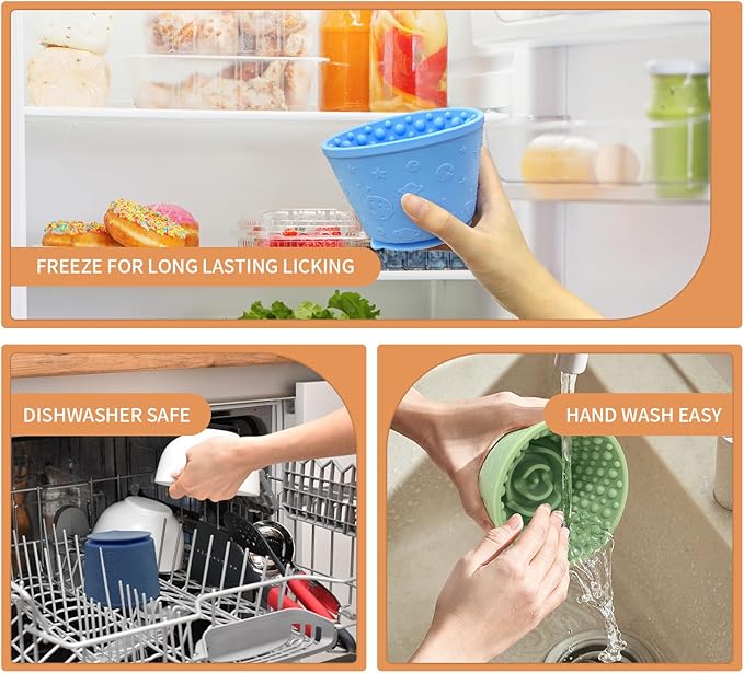 - Different colors and sizes: We have slow feeding mats and slow feeding bowls in different colors and sizes. You have many choices and can rotate them
