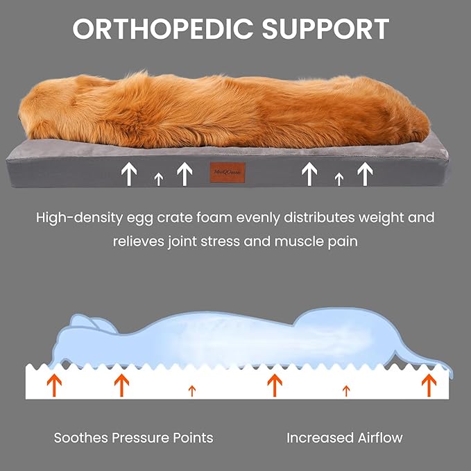 - ORTHOPEDIC SUPPORT TAKES CARE OF JOINTS: The orthopedic dog bed is filled with high-density egg crate foam. It provides enough support for the spine, cushioning and decompression without collapsing, effectively comforting the dog, providing support for bones and joint areas, relieving pressure, relieving joint and muscle pain, body pain, arthritis, etc., effectively protects the health of your dog's joints and promotes a deep sleep, perfect for older dogs or pets that are not feeling well