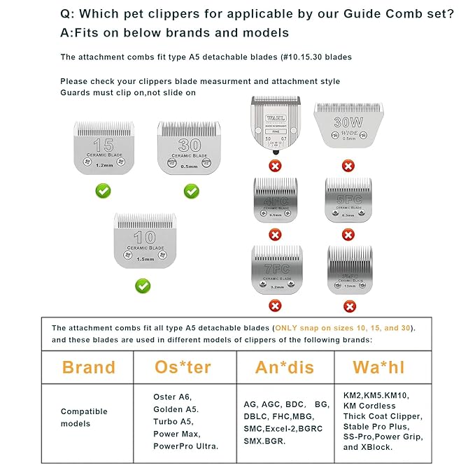 - 【Compatible With blades】Fit all type A5 detachable blades (sizes 10/15/30) ,Compatible with most Oster, Wahl and Andis detachable-style clippers. (ONLY Snap on Size #10/15/30)