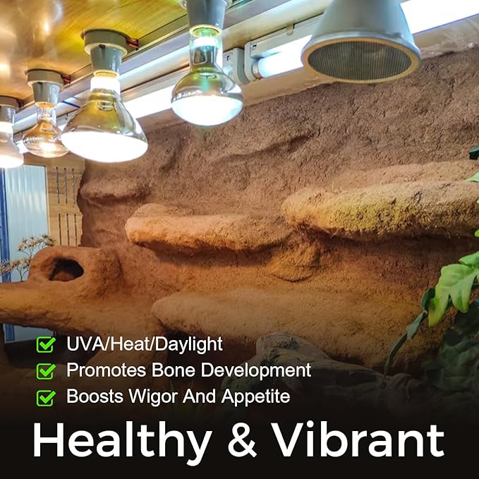 - Long lasting: Made with thickened explosion-proof glass and high-quality filaments, our UVA reptile heat lamp lasts up to 2000-3000 hours. Includes 2 bulbs for backup—recommended usage of 4-6 hours daily