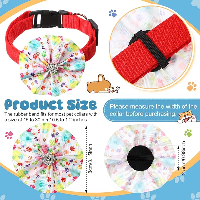 - Size Informations: the dog paw print bows are about 3.15 inches/ 8 cm in diameter, suitable for most pets, providing a comfortable using experience; The rubber band fits for most pet collars with a size of 0.6-1.2 inches/ 15-30 mm