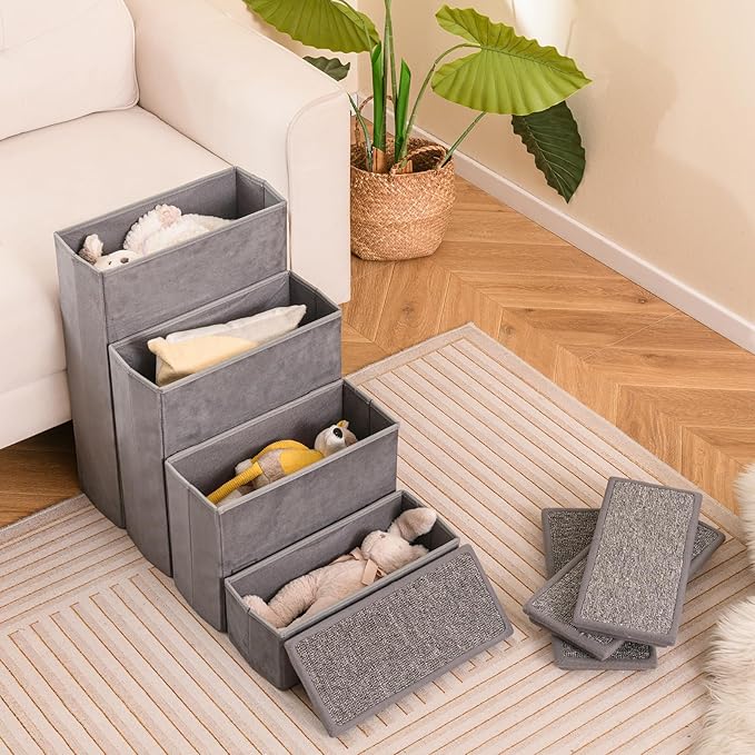 - [Smart Storage Design]: Each step doubles as a storage compartment, perfect for organizing pet essentials like treats, toys, and clothes. Secured with strong hook-and-loop fasteners, the compartments can also be separated and used individually, adding flexibility to your storage options.