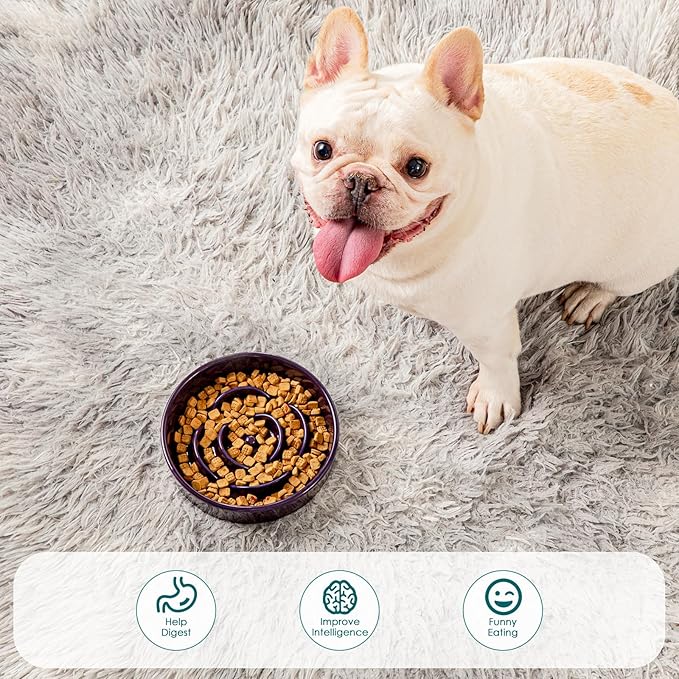 - "Stops Chewing, No Plastic Chips!: Plastic slow feeder dog bowls crack and chip easily when dogs chew on them—and many do! Our ceramic slow feeder dog bowl solves this problem with a tough, bite-proof design that won’t break or shed harmful plastic pieces. Safer, sturdier, and built to last, it’s the worry-free choice for chew-happy dogs!