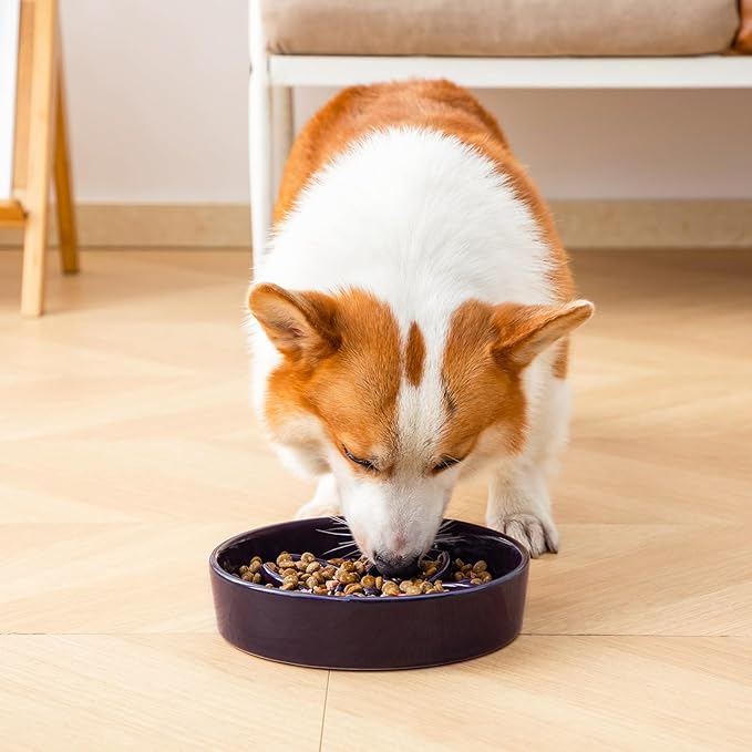 - 【Ideal for Mid-Size Dogs】 Ideal for middle breeds like Beagles and French Bulldogs, this compact bowl (8.5" diameter x 1.9" height) holds 1.5 cups of food or water. Its shallow design makes it easy for middle dogs to access their meals comfortably while keeping portions controlled.