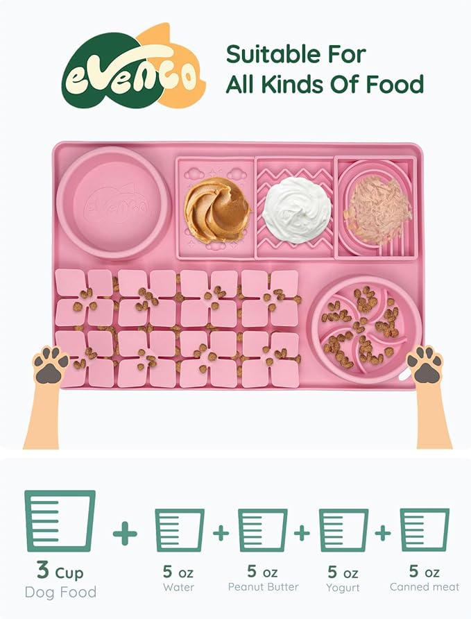 - UPGRADED 4-IN-1 FEEDER: Our multifunctional slow dog feeder includes a slow-eating bowl, a dry food bowl, a snuffle area for mental stimulation, and a lick mat with 3 patterns. Ideal for enhancing the lives of dogs and cats, and a thoughtful gift for a multi-pet family.