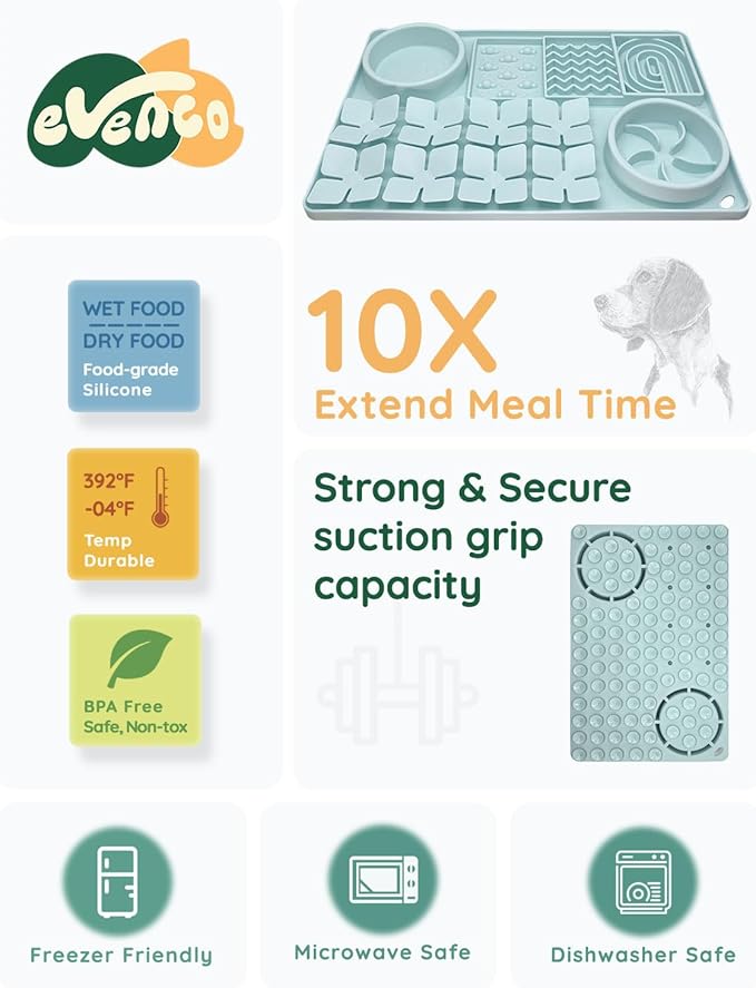 - UPGRADED 4-IN-1 FEEDER: Our multifunctional slow dog feeder includes a slow-eating bowl, a dry food bowl, a snuffle area for mental stimulation, and a lick mat with 3 patterns. Ideal for enhancing the lives of dogs and cats, and a thoughtful gift for a multi-pet family.