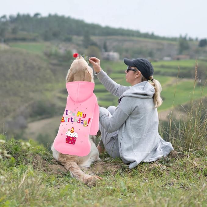 GreenJoy Dog Sweater Dog Hoodie Cold Weather Coat Hooded Sweatshirt for Puppies,Cats, Small Medium Large Dogs (Pink(It's My Birthday), XX-Large)