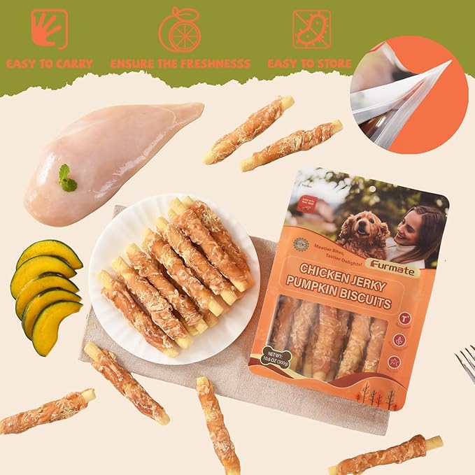 - Real Ingredients: Furmate dog treats are made of pure natural chicken breast and pumpkin,free of gluten.Meanwhile,They contain no artificial colorings,fillers,or preservatives