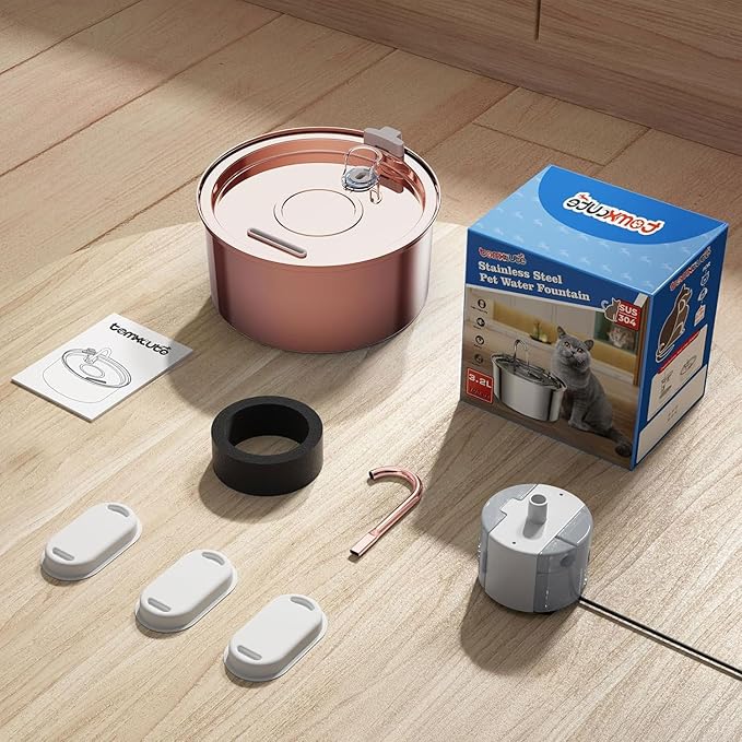 - SUS304 & Copper, Healthy Food Grade Material - Cat water fountain is made of 304 stainless steel & copper, it is resistant to high temperature, corrosion and oxidation. Compared with plastic materials, pet water fountain can effectively prevent black chin in cats. Specially, it can withstand high temperature cleaning to ensure your pet's health.