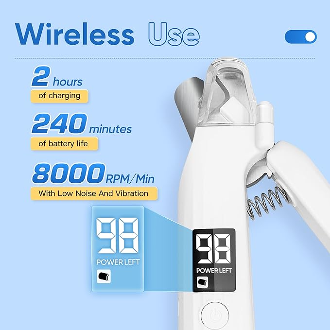 - 【LED Lighting for Bloodline Detection】: Built-in dual LED lights illuminate the bloodline in your pet’s nails, you can confidently trim your pet's nails with accuracy, avoiding over-grinding.