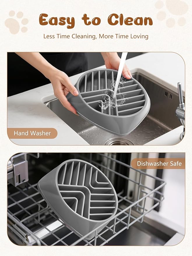 - Easy to Clean and Maintain: Cleaning your dog slow feeder bowl is a breeze! Its smooth surface prevents food from getting stuck, and it's dishwasher-safe for easy cleaning. Whether your dog enjoys dry, wet, or raw food, this slow feeder dog bowl is easy to maintain.