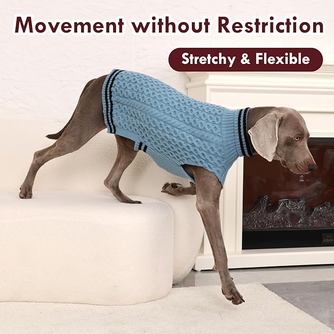 Large Dog Sweater, Fall Winter Warm Turtleneck Pullover, Thick Soft Stretchy Knit for Sensitive Skin, Fleece Christmas Sweaters for Dogs Girl Boy Easy on, Blue L