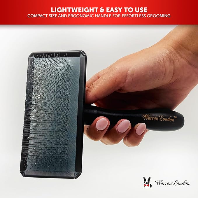 Warren London Gentle Touch Slicker Brush for Puppies & Small Dogs – 4" x 2" Soft Pin Grooming Brush – Tangle Remover for Sensitive Skin – Compact, Lightweight & Easy to Use