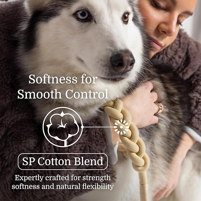 2025 New Edition, Fei & Eve Hand-Braided Dog Leash, 4FT | SP Cotton Material | Heavy Duty Training | Comfort Grip Handle for Small/Medium/Large Dogs, Champagne