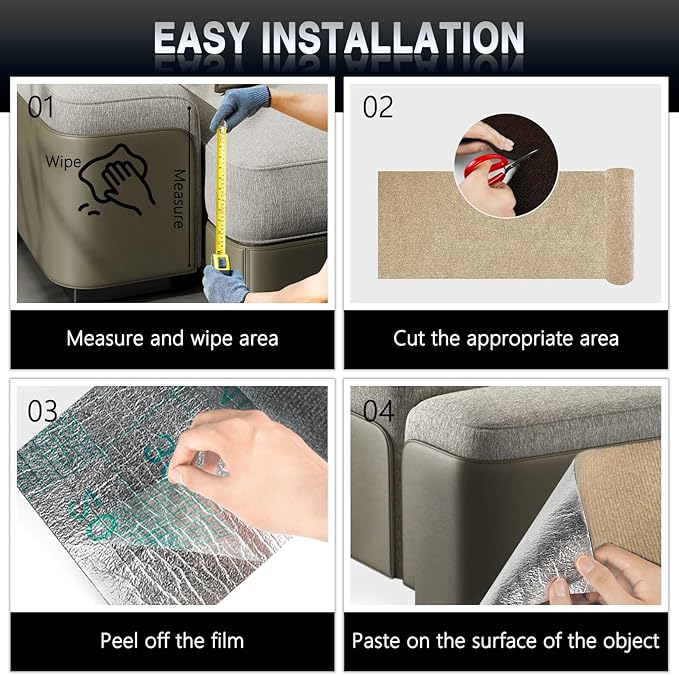 - [Strong Adhesive Support]: This cat carpet mat is designed with a self-adhesive backing that is held securely in place with an eco-friendly adhesive. Easy to install, simply peel off the backing and stick it to the desired surface to ensure a secure, hassle-free fit and maintain a firm grip.