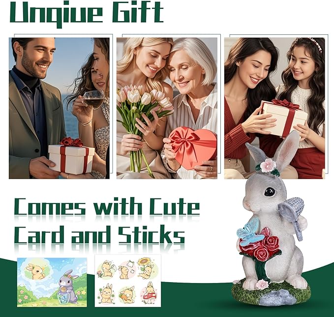 - Perfect Gift for Any Occasion: Perfect as gardening gifts or thoughtful gifts for mom and grandmother, this charming rabbit statue arrives in premium pearl cotton packaging with matching stickers and a card—ready to celebrate birthdays, holidays, Mother's Day, Father's Day, and Christmas, especially for house warming as a garden gift.