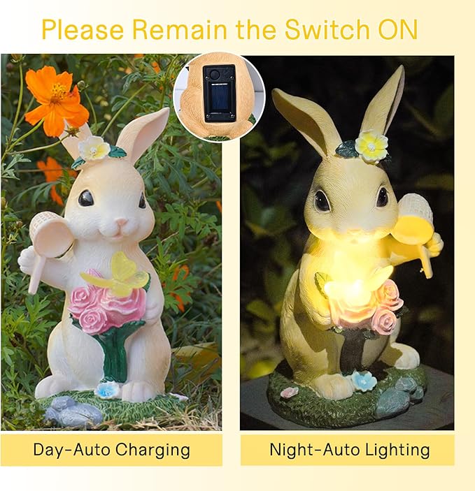 - Durable and Weatherproof Materials: Crafted from high-quality resin, our bunny garden statue is vibrant and intricately detailed. Equipped with UV-resistant coatings and an IP44 waterproof rating, it withstands rain, snow, and sun, ensuring long-lasting beauty for your outdoor decor.