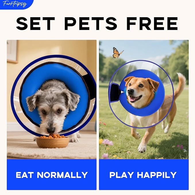 - 【2-in-1 Detachable Shield Design】The Furrtripsy Dog Cone Collar combines an inflatable donut base with a sturdy,transparent removable shield,providing dual protection during surgery recovery and daily wound care while allowing easy access for eating,drinking,or resting.