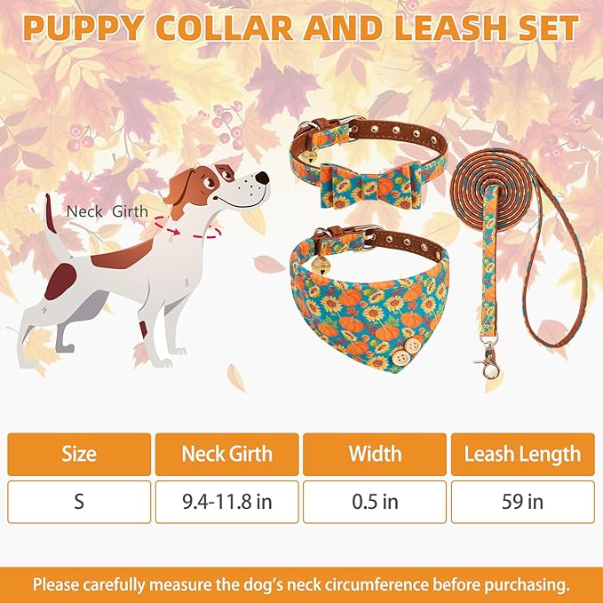 - 3 PCS IN 1 PACKAGE: A set consists of two different collars(a bow tie collar, a bandana collar) to meet the needs of different scenes. Also included is a leash that makes it easier for your dog to walk. It is more complete and suitable for cats and most dogs, do not worry about going out.
