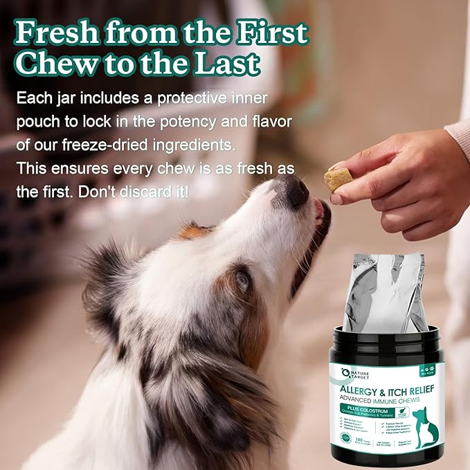 NATURE TARGET Dog Allergy Chews - Dog Allergy Relief, for Skin, Coat, Anti-Itch, Seasonal Allergies, Scratching, Pawlicking, 180 Freeze Dried Chews