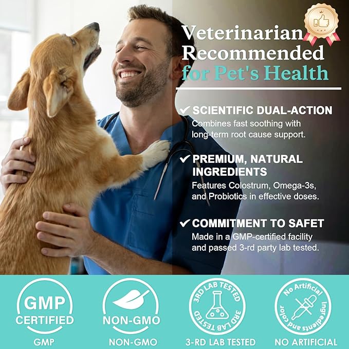 - GUT & IMMUNE HEALTH - Over 70% of your dog's immunity is in their gut. Our formula, fortified with Colostrum and 3 Billion Probiotics, helps balance gut flora and regulate the immune response, building resistance to allergens