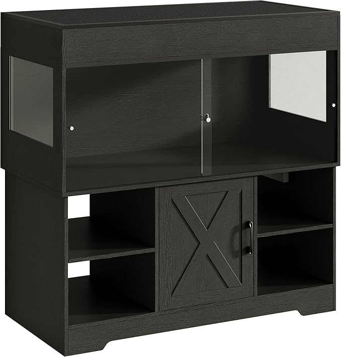 - All-in-One Storage Base – More than just a vivarium tank, this design includes a full base cabinet with dual side compartments and a center door cabinet. Easily store all your reptile care essentials—UVB lamps, heating mats, thermometers, substrate, snacks, and tools—in one organized space.