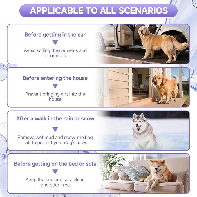 - Ideal for Daily Use & Home Cleanliness – Perfect for use after outdoor walks, before car rides, after potty breaks, or when your cat steps on litter. Also great for senior pets who need extra help with paw care. This Pet Paw Cleaner helps remove dirt and mud from paws before entering the house, keeping floors, carpets, sofas, and beds cleaner and more protected. A must-have for maintaining both paw care and household tidiness.