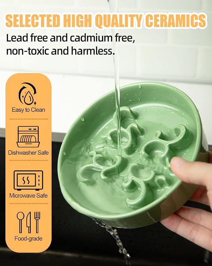 - Non-slip, Say Goodbye To The Messy Floor: Made of sturdy ceramic (1.2 LB, 4x heavier than plastic), it prevents tipping and spills for mess-free dining. The bottom of the ceramic slow feeder dog bowl with non-skip stickers keeps the bowl firmly in place. A Clean solution for playful eaters!