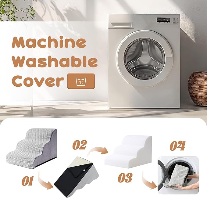 - EASY TO ASSEMBLE & CLEAN: Setting up these pet steps is a breeze! Allow 24-48 hours after delivery for the cat steps to fully expand before first use. The removable cover is machine washable, clean with cold water and dry on low heat only