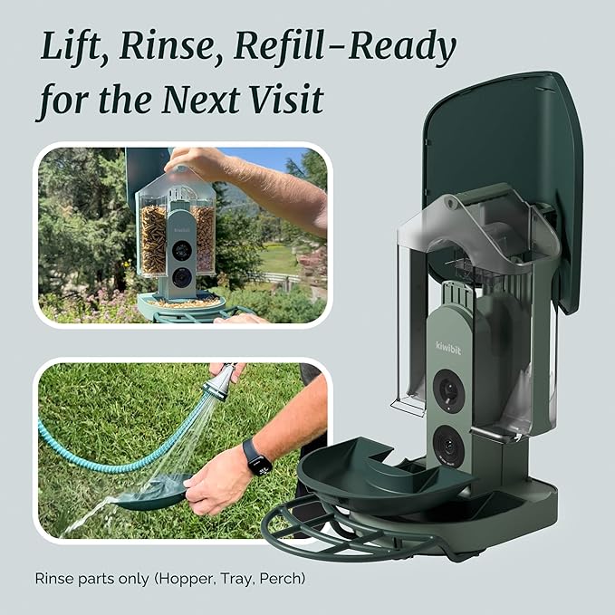 Kiwibit Beako™ Smart Bird Feeder with 4K Camera 4.4W Solar Roof for Outdoors - Ultra HD Live Stream & Photos, 10,000+ Bird Species AI-Identified, Real-Time Motion Detection, Easy Setup, Refill & Clean