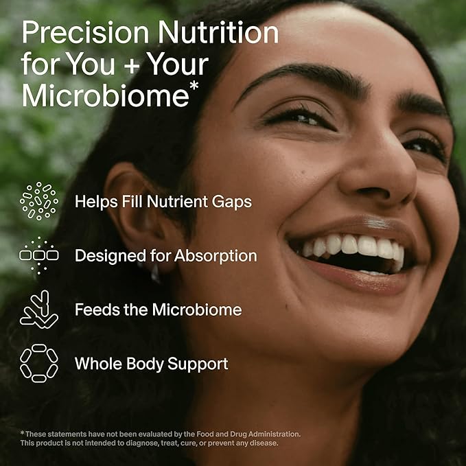 - Superior Delivery & Absorption: Proprietary capsule-in-capsule technology features an outer capsule that delivers bioavailable and bioactive vitamins + minerals to the upper GI tract, and an inner capsule that delivers key nutrients to the colon to help gut microbes perform essential functions.