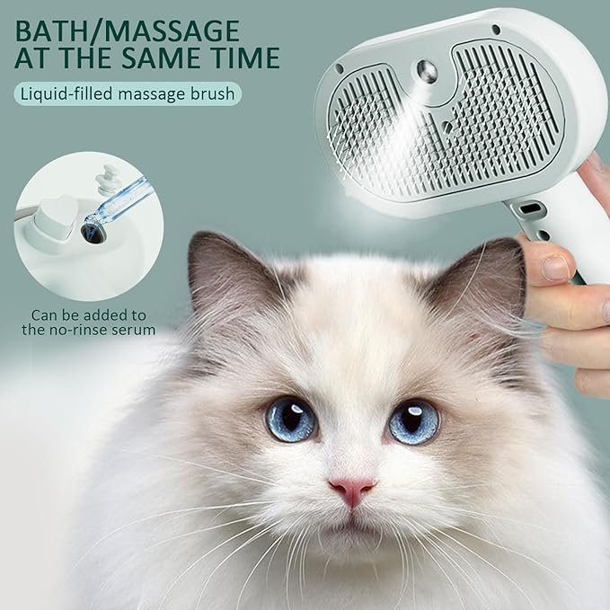 3 In 1 Self Cleaning Steamy Pet Brush, Pets Spray Hair Removal Comb - Anti-Static, Dog Grooming Tool with Steam & Self-Cleaning, Skin-Friendly Design + Bathing Solution